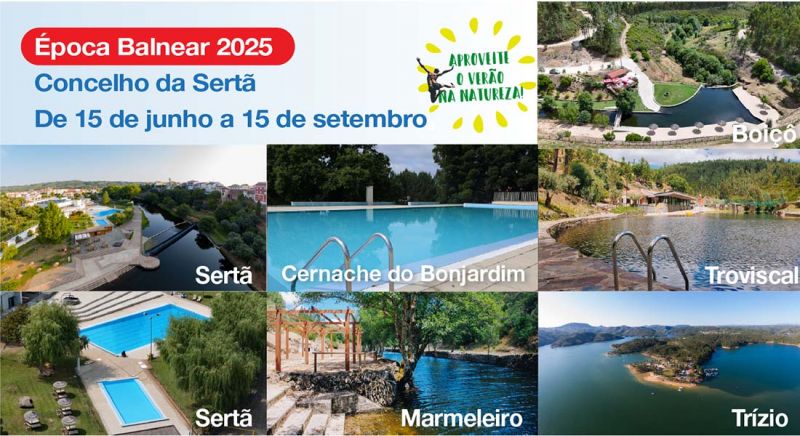 Durante este período, as piscinas municipais da Sertã e de Cernache do Bonjardim funcionarão todos os dias, das 10:00 às 20:00 horas, com...